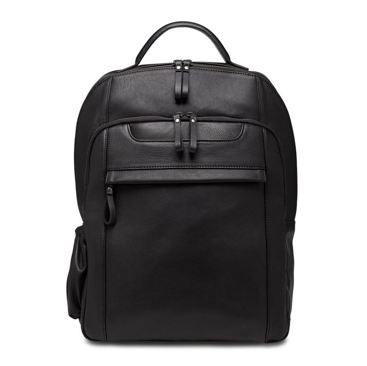 Crafted from premium nappa leather, this black classic backpack combines timeless design with practical functionality. Featuring a spacious interior, it offers ample room for daily essentials, including laptops, notebooks, and more. The adjustable shoulder straps provide a comfortable fit, while the top carry handle adds versatility for various carrying options. A zippered front pocket and interior compartments help keep smaller items organized and easily accessible. Designed with durable stitching and high-quality hardware, this backpack is ideal for both professional and casual use.