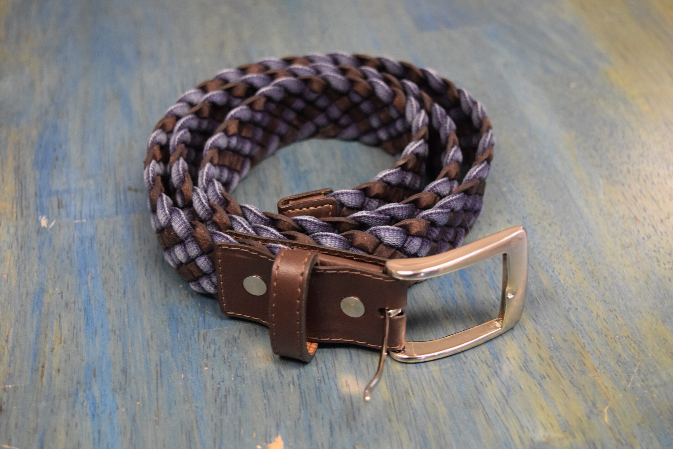 Brown leather/navy cloth braided belt
