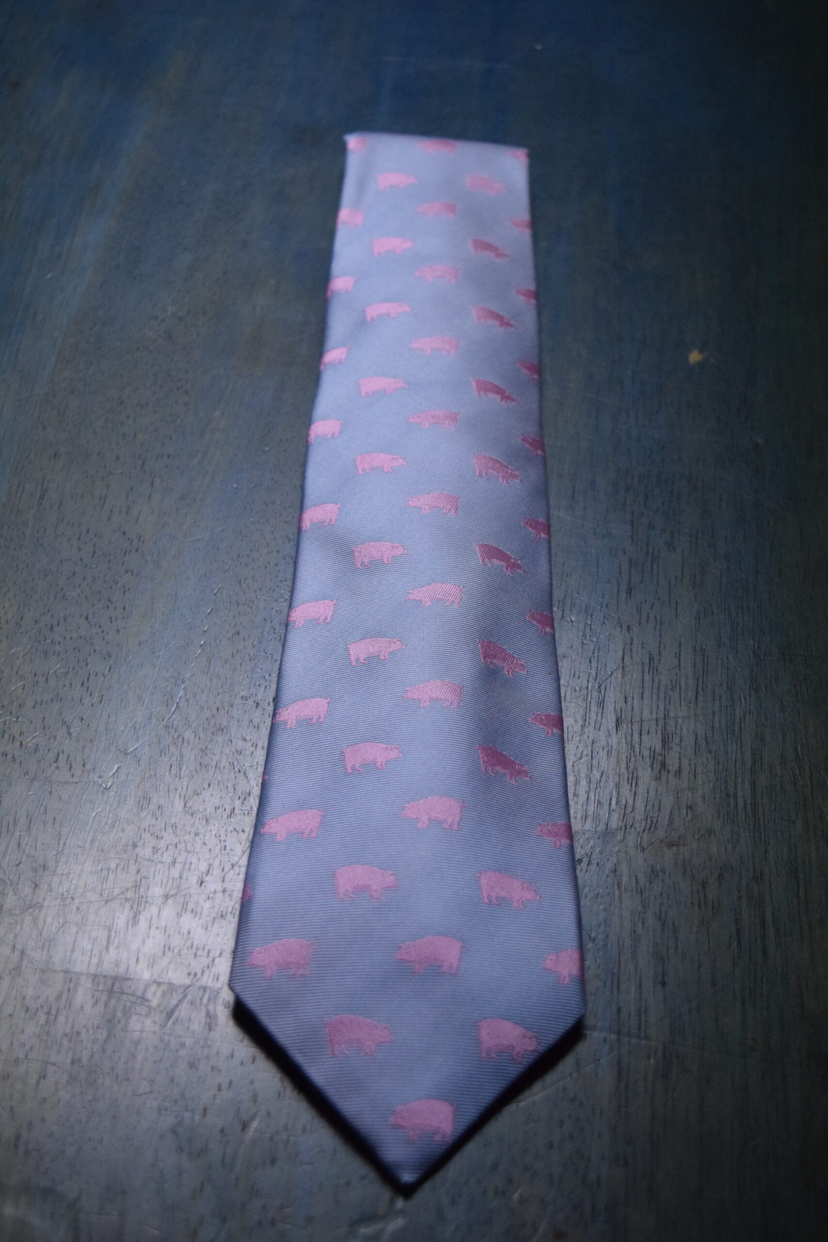 Collared Greens Tie Light Blue w/ Pink Pigs