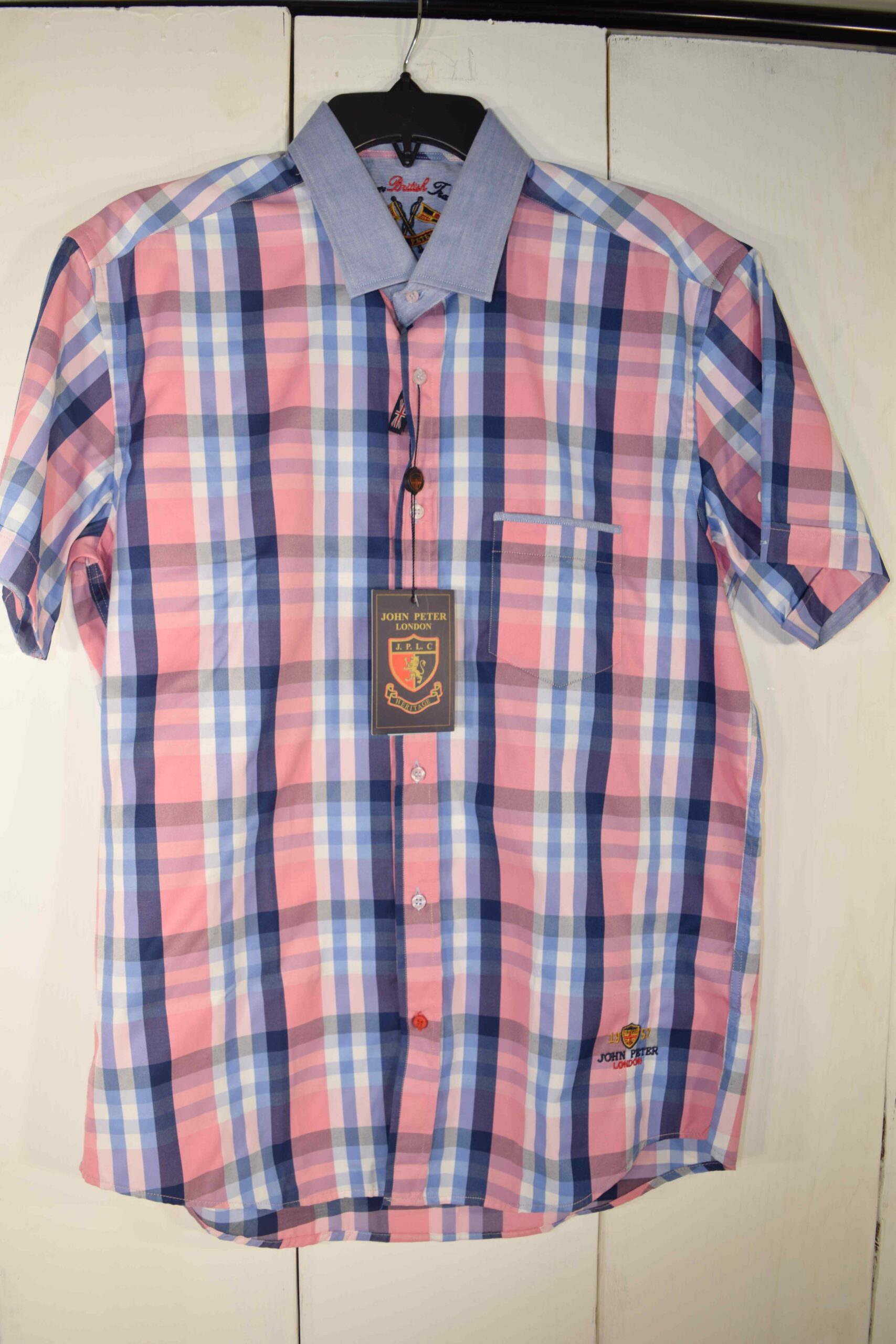 John Peter London Navy/Orange/Red Plaid Shirt