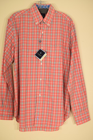 TailorByrd Coral/Blue/Green Plaid Shirt